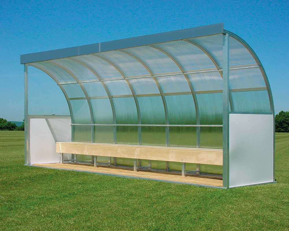 Die Trainerbank und Spielerkabine bietet je nach Größe ausreichend Platz für sechs, zehn oder dreizehn Personen. In der Standard-Ausführung verfügt die Kabine über eine Sitzbank aus einem Holz-Lattenrost. Auf Anfragte können Sie aber auch Kunststoffschalen als Sitzflächen erhalten.